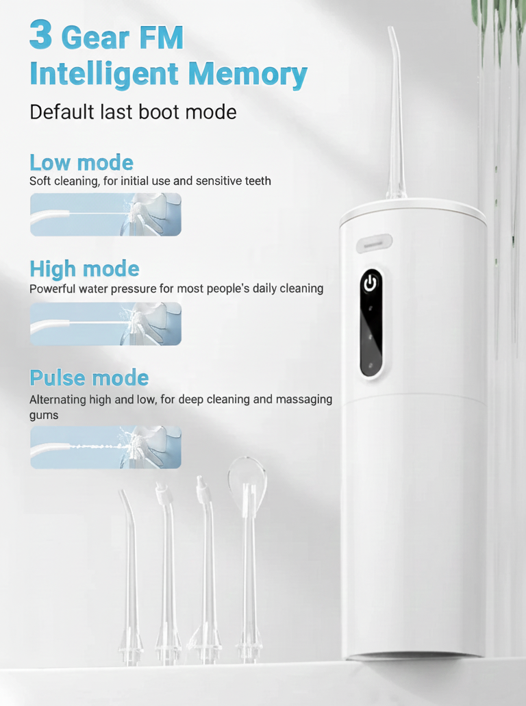 Our flosser uses a medical-grade diaphragm pump to deliver a consistent, controlled stream that cleans between teeth and along the gumline effectively removing plaque and debris without irritation. It’s a science-backed step toward long-term oral wellness.